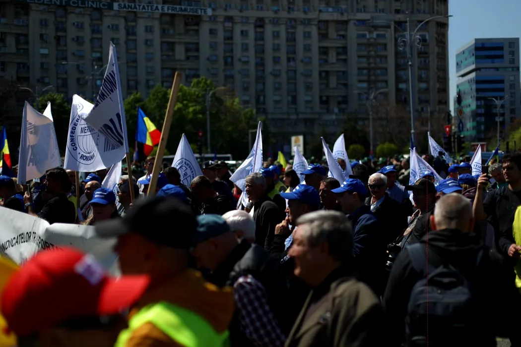 Protest în Piața Victoriei, organizat de Confederația Meridian: Sute de sindicaliști au ieșit în stradă pentru a-și cere drepturile