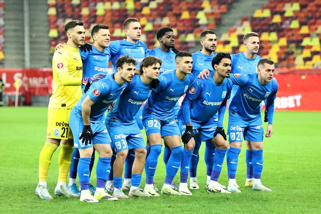 Jucatorii formatiei Universitatea Craiova pozeaza inainte de inceperea meciului de fotbal contra echipei Dinamo din etapa a XXVI-a a Superligii, disputat pe Stadionul Arcul de Triumf din Bucuresti, luni, 9 februarie 2026. GEORGE FLUSTER/ MEDIAFAX FOTO