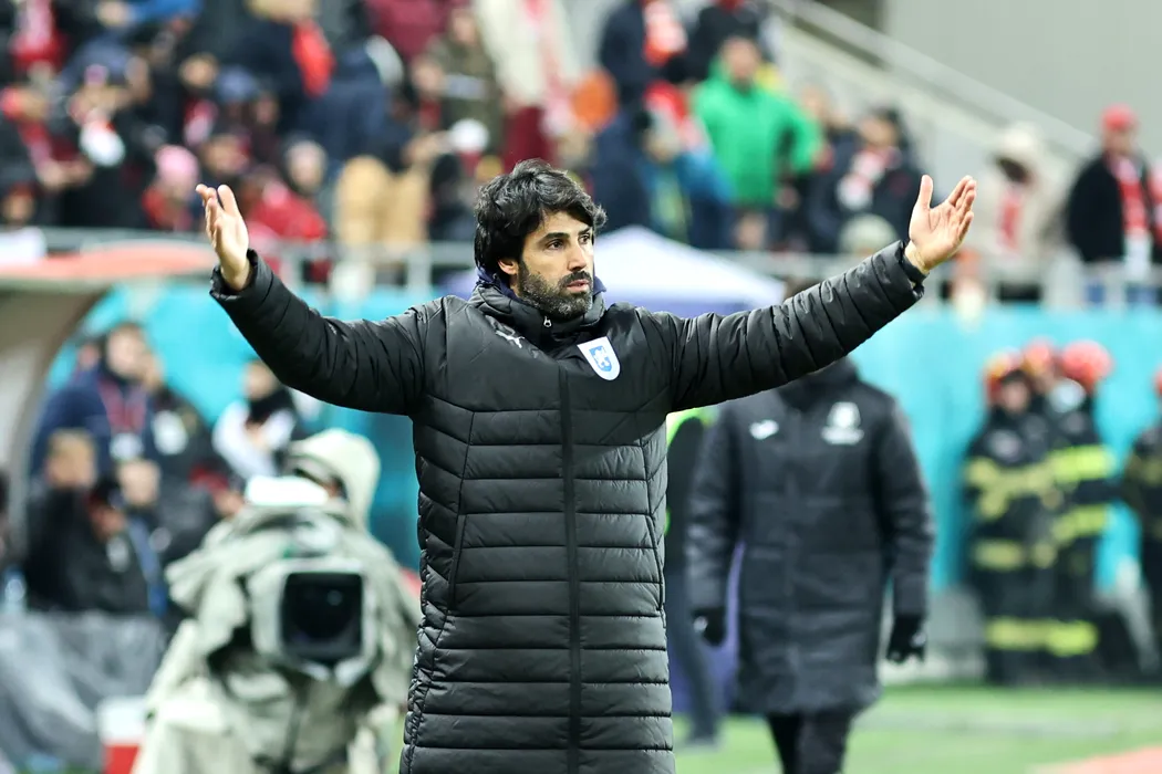 Filipe Coelho, antrenorul echipei Universitatea Craiova, urmareste meciul de fotbal contra formatiei Dinamo din etapa a XXVI-a a Superligii, disputat pe Stadionul Arcul de Triumf din Bucuresti, luni, 9 februarie 2026. GEORGE FLUSTER/ MEDIAFAX FOTO