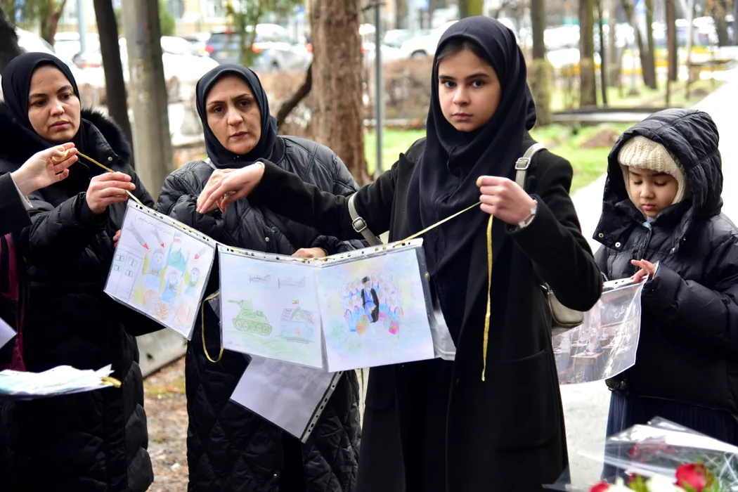 KYRGYZSTAN, BISHKEK - MARCH 3, 2026: Activists gather outside the Embassy of Iran to mourn victims of US-Israeli military strikes, including Supreme Leader Ali Khamenei, several other high-ranking public officials as well as civilian casualties. The latest figures bring to 165 the death toll from the February 28 airstrike on a girls school in Minab, southern Iran (Credit Image: © Vladislav Nogai/TASS via ZUMA Press)
