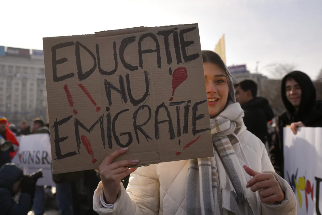 Membrii Federatiei Sindicatelor Libere din Invatamant, Federatiei Sindicatelor din Educaţie „Spiru Haret” si Federatiei Nationale Sindicale „Alma Mater”, protesteaza in Piata Victoriei impotriva masurilor fiscale adoptate de Guvern, miercuri 4 februarie 2025. ALEXANDRU DOBRE / MEDIAFAX FOTO