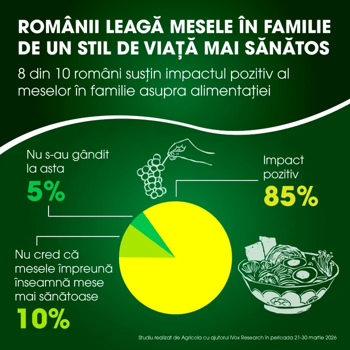 Studiu Agricola: Peste 84% dintre români cred că mesele împreună contribuie la formarea unor obiceiuri alimentare sănătoase