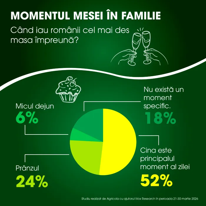 Studiu Agricola: Peste 84% dintre români cred că mesele împreună contribuie la formarea unor obiceiuri alimentare sănătoase