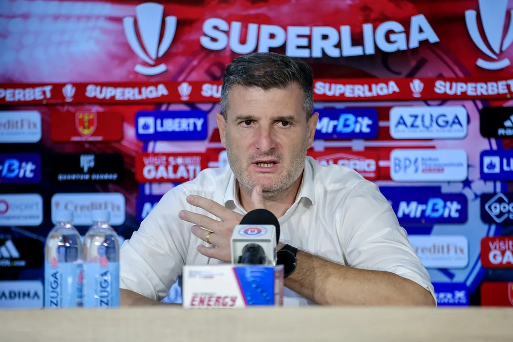 Laszlo Balint, antrenorul echipei Otelul Galati, sustine o conferinta de presa la finalul meciului contra formatiei AFC Botosani, din etapa a 9-a a Superligii, disputat pe stadionul Otelul din Galati, duminica, 14 septembrie 2025. Otelul Galati a fost invinsa, duminica, de AFC Botosani, scor 0-1. SORIN PANA / MEDIAFAX FOTO
