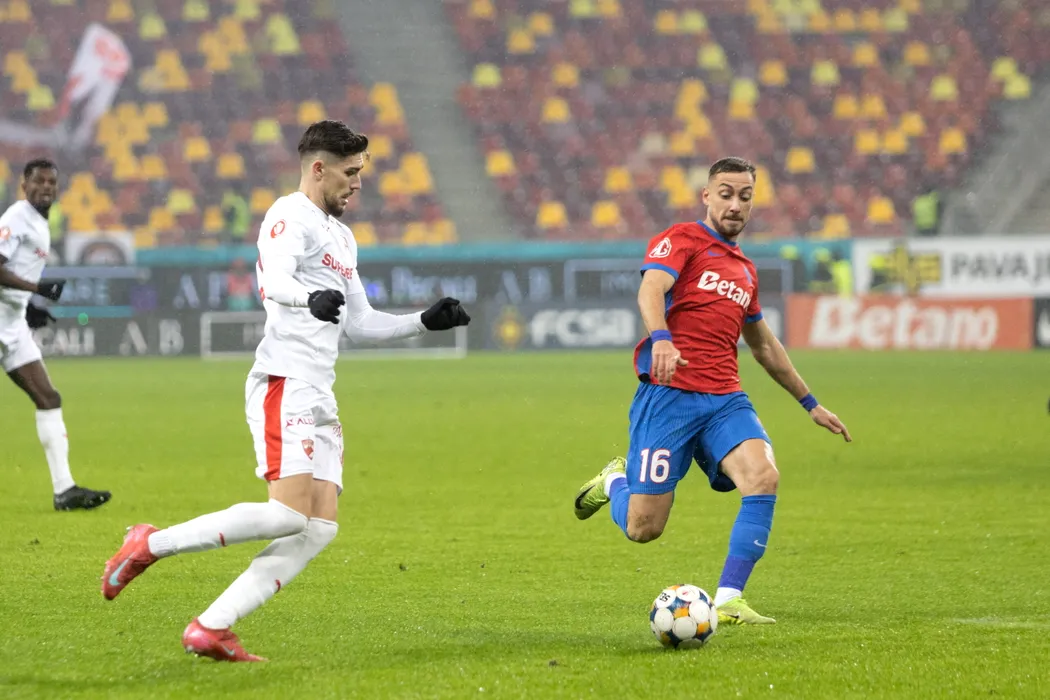 Mihai Lixandru (D), de la FCSB, suteaza in timpul meciului de fotbal contra echipei Dinamo din etapa a XIX-a a Superligii, disputat pe Arena Nationala din Bucuresti, sambata, 6 decembrie 2025. ALEXANDRA PANDREA / GMN / MEDIAFAX FOTO