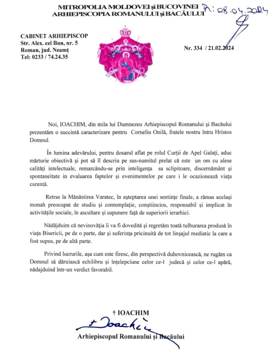 Trei ierarhi ai BOR au trimis instanței scrisori de caracterizare, în bunul stil comunist, prin care încercau să-l reabiliteze pe decăzutul episcop al Hușilor, Cornel Onilă / „Bună colaborare pe linie duhovnicească”