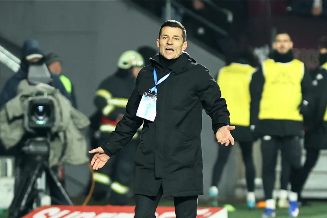 Constantin Galca, antrenorul echipei Rapid, urmareste meciul de fotbal contra formatiei Universitatea Cluj, din etapa a XXIV-a a Superligii, disputat pe stadionul Rapid-Giulesti din Bucuresti, sambata, 31 ianuarie 2026. GEORGE FLUSTER / MEDIAFAX FOTO