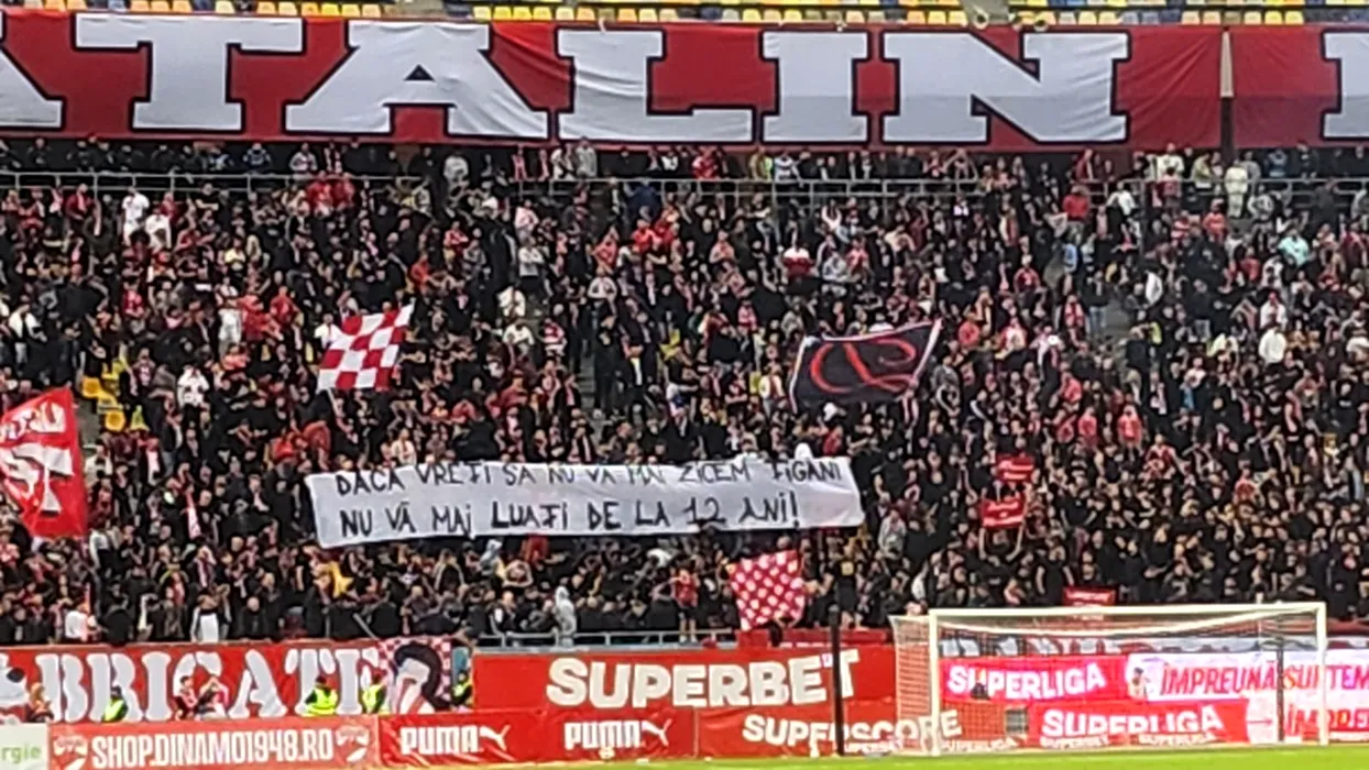 Ultrașii dinamoviști recidivează. Noi bannere cu mesaje rasiste prezente la meciul Dinamo-Rapid