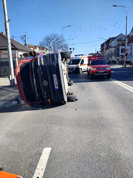 UPDATE: Ambulanță SMURD și o mașină implicate în accident pe o stradă din Sibiu. Plan Roșu activat