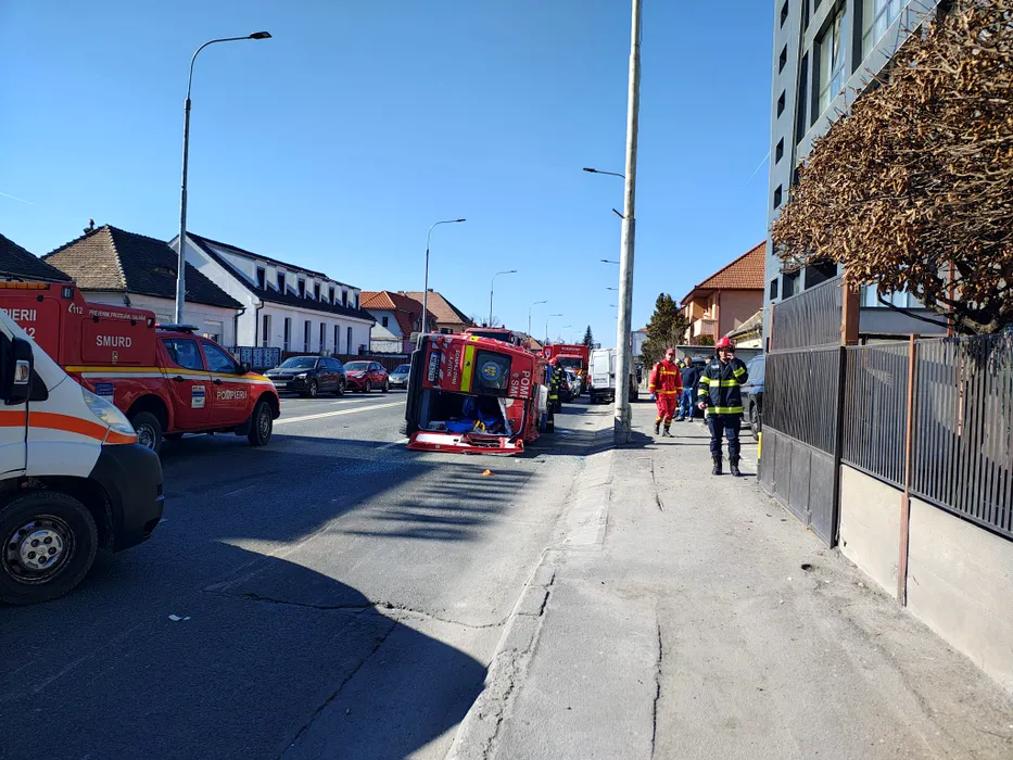 UPDATE: Ambulanță SMURD și o mașină implicate în accident pe o stradă din Sibiu. Plan Roșu activat