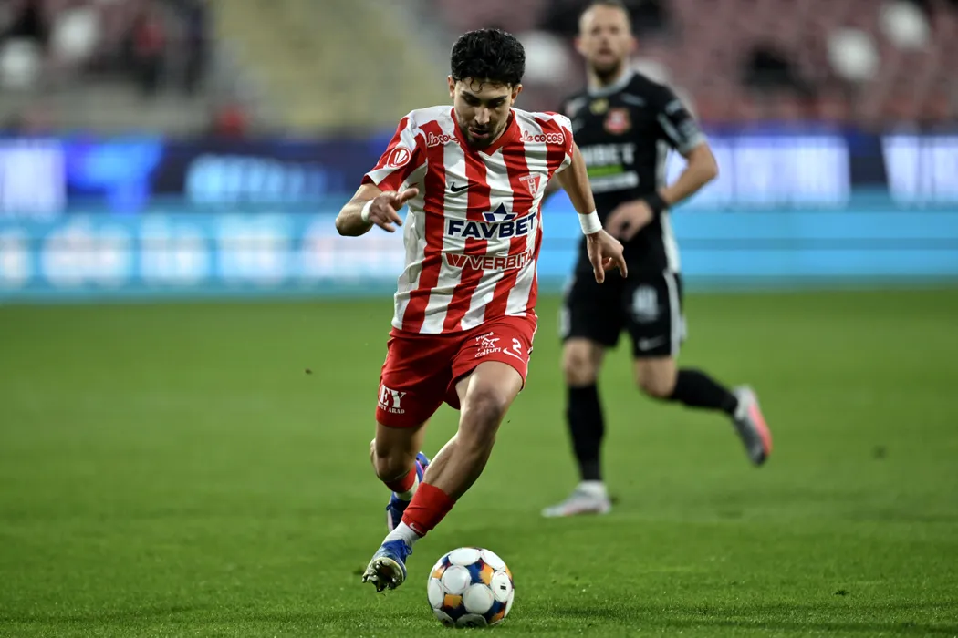 Meciul de fotbal dintre UTA Arad si FC Hermannstadt, care deschide play-out-ul Superligii, disputat pe Arena Francisc Neuman din Arad, vineri, 13 martie 2026. LECKZI JOSZI / MEDIAFAX FOTO