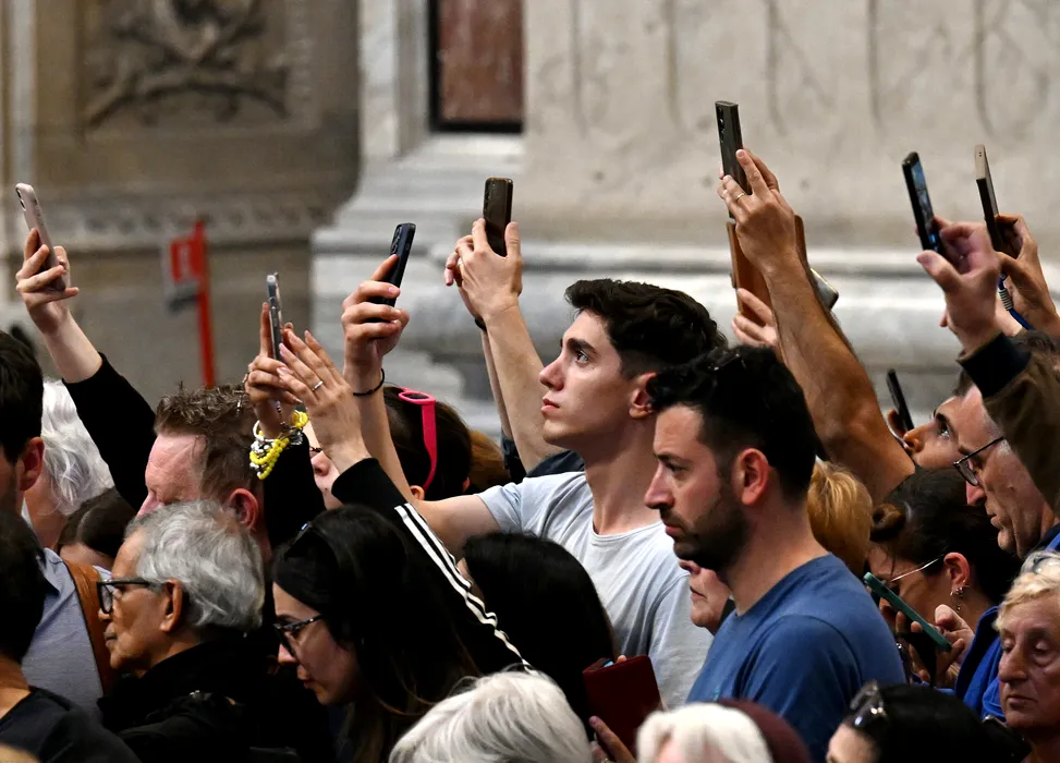 People queue in Saint Peter’s basilica to pay their respects to late Pope Francis on April 23, 2025 at the Vatican. Photo by Eric Vandeville/ABACAPRESS.COM