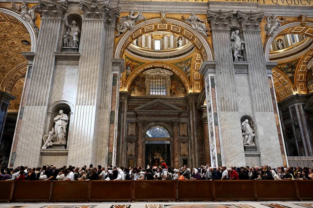 People queue in Saint Peter’s basilica to pay their respects to late Pope Francis on April 23, 2025 at the Vatican. Photo by Eric Vandeville/ABACAPRESS.COM