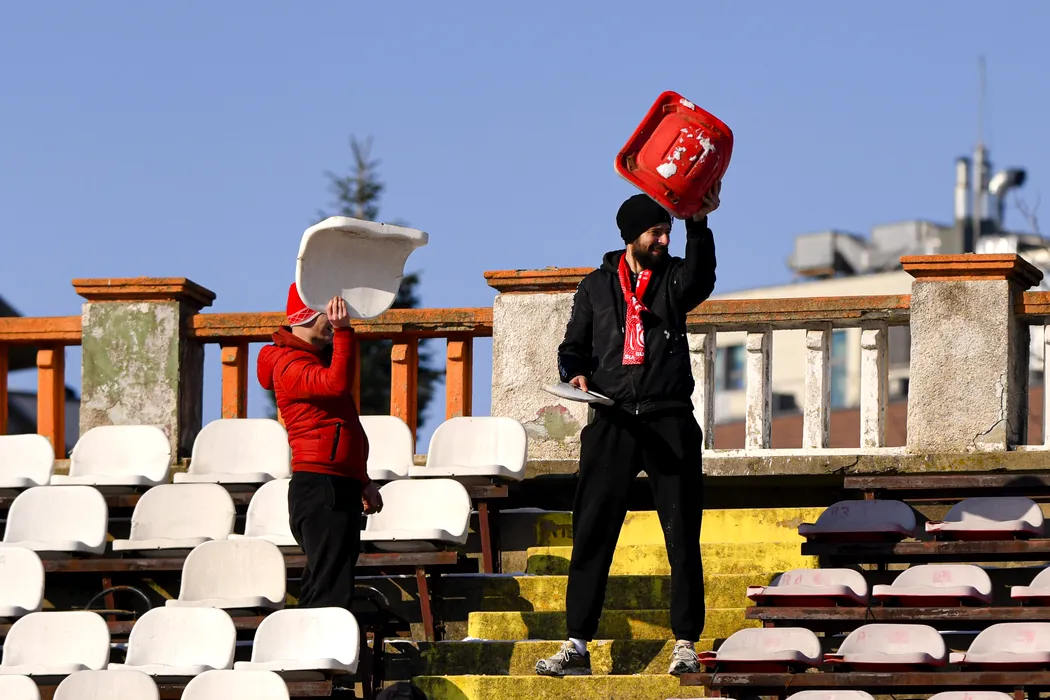 Suporterii isi iau cate un scaun amintire la evenimentul de incepere a demolarii Stadionului Dinamo din Bucuresti, marti, 20 ianuarie 2026. ALEXANDRU DOBRE / MEDIAFAX FOTO