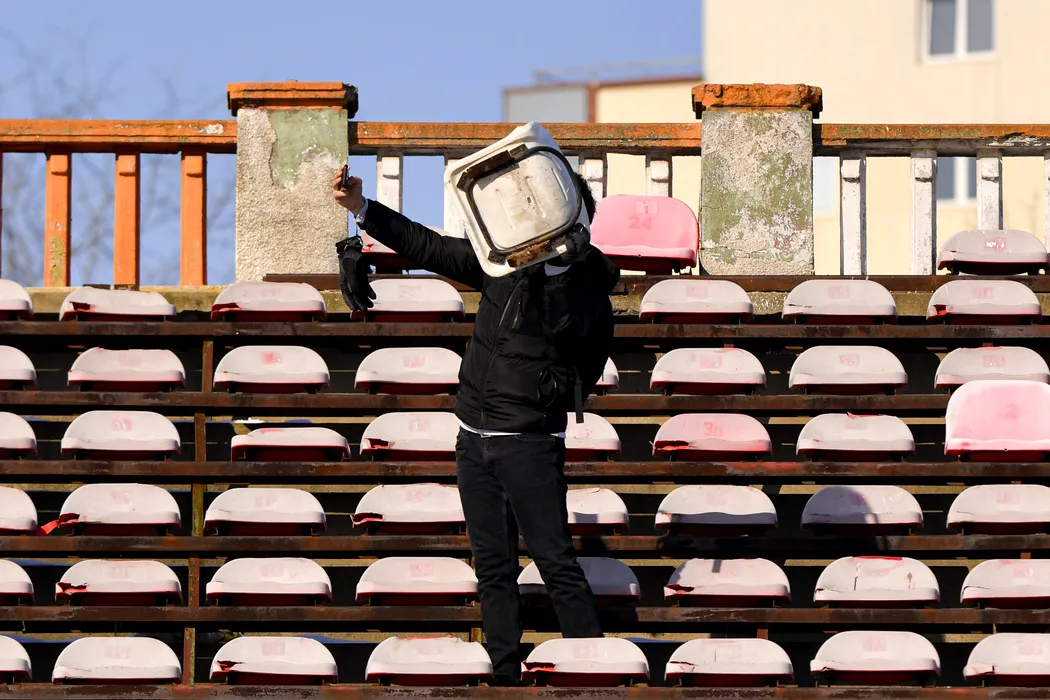 Suporterii isi iau cate un scaun amintire la evenimentul de incepere a demolarii Stadionului Dinamo din Bucuresti, marti, 20 ianuarie 2026. ALEXANDRU DOBRE / MEDIAFAX FOTO