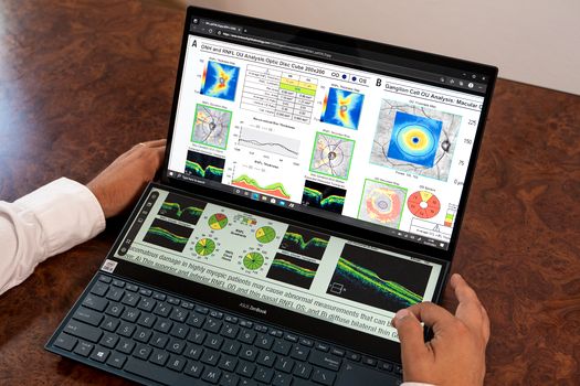 Dr. Şuţă, el însuşi utilizator de aşa ceva, recomandă un ecran de tip OLED de ultimă generaţie, care protejează ochii utilizatorului, având un filtru pentru lumina albastră, şi fiind, din toate punctele de vedere, benefic. „În prezent folosesc un laptop ASUS ZenBook Pro Duo 15 OLED, care pentru mine a fost o alegere simplă, deoarece nu prezintă doar un singur ecran, ci două”. Primul ecran, un OLED tactil cu rezoluţie 4K, este folosit de medic pentru rularea aplicaţiilor, având un contrast excelent şi culori naturale.