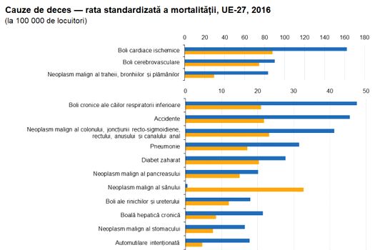 Cauze de deces în Uniunea Europeană – anul 2016 (la 100.000 de locuitori)