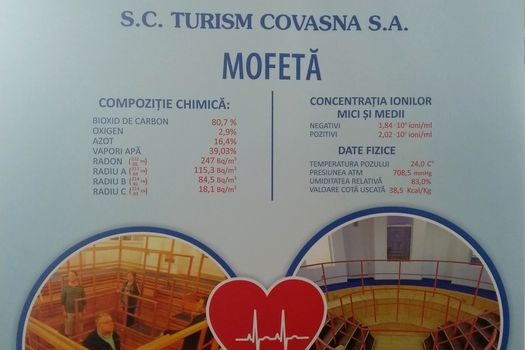 La Spitalul de Recuperare Cardiovasculară Dr. Benedek Géza avem o mofetă naturală unică în Europa: bazinul are o suprafaţă de 100 m² cu o capacitate de gaz mofetic 220 m³.