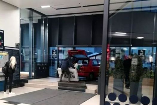 Fotografia a fost surprinsă în data de 4 octombrie, iar în imagine se vede cum un bărbat încearcă să bage în portbagajul unui autoturism un televizor aflat în cutie, la una din intrările dintr-un centru comercial din Constanţa.