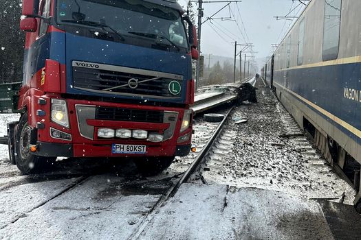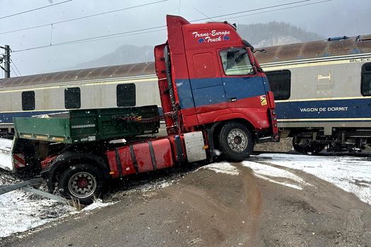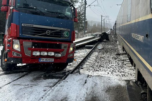 Un camion care a avut probleme tehnice a rămas blocat în zona unei treceri la nivel cu calea ferată.