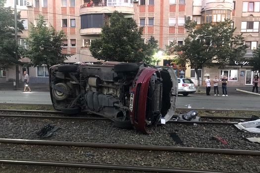 Potrivit Poliţiei Arad, tânărul de 19 ani, din Curtici, a condus microbuzul pe Calea Aurel Vlaicu, iar într-o curbă a pierdut controlul volanului.