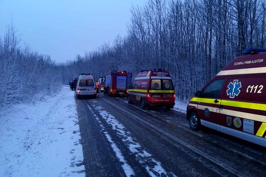 Au fost alerate 2 echipaje complexe de stingere şi descarcerare, 2 module dedicate de descarcerare, 2 autospeciale pentru transport victime multiple, 3 ambulanţe SMURD şi 2 ambulanţe SAJ.