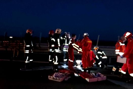 Potrivit IPJ Arad, microbuzul a intrat într-un TIR parcat pe banda de urgenţă, pe autostrada A1, la ieşire spre Ungaria.
