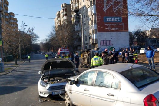 „În jurul orei 09.20, conducătorul unei autospeciale de poliţie, în vârstă de 51 de ani, care se deplasa pe Şos. Progresului, în momentul în care a ajuns la intersecţia cu Str. Năsăud, având în funcţiune semnalele luminoase şi acustice, a intrat in coliziune cu 2 autovehicule, în urma impactului autospeciala răsturnându-se pe o parte”, conform sursei citate.
