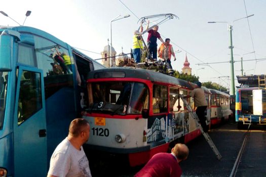 La faţa locului s-au deplasat mai multe ambulanţe, în condiţiile în care în tramvai se aflau pasageri.