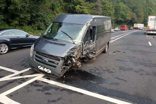 În urma impactului, şoferul microbuzului, un bărbat de 43 de ani, cetăţean străin, a fost rănit. De asemenea, a fost rănită şi o femeie de 31 de ani, care conducea maşina proiectată în cele două autotrenuri. Cele două victime au fost duse la spital conştiente.