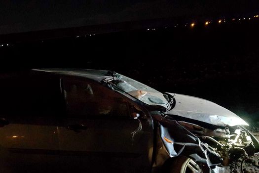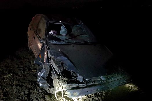 După impact, autoturismul a părăsit şoseaua şi s-a răsturnat la marginea drumului.