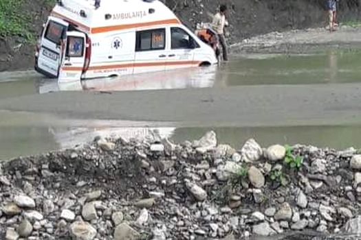 „Nu a ştiut că drumul este închis şi a intrat pe o porţiune cu apă şi noroi. A rămas împotmolită. Ambulanţa se deplasa la un caz din localitate, la o femeie depresivă care a înghiţit 20 de pastile”, a spus primarul.