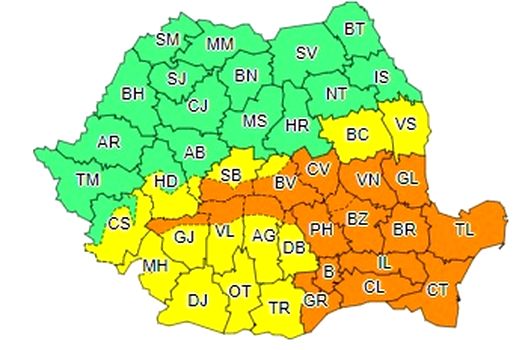 Avertizarea cod portocaliu va intra în vigoare sâmbătă la ora 9.00 şi este valabilă până duminică la ora 15.00. Sunt vizate judeţele Giurgiu, Călăraşi, Ialomiţa, Brăila, Buzău, Prahova, Ilfov şi Municipiul Bucureşti, Constanţa, Tulcea, Galaţi şi Vrancea, unde ploile vor fi temporar abundente şi se vor cumula cantităţi de apă importante, în general între 40 şi 60 l/mp.