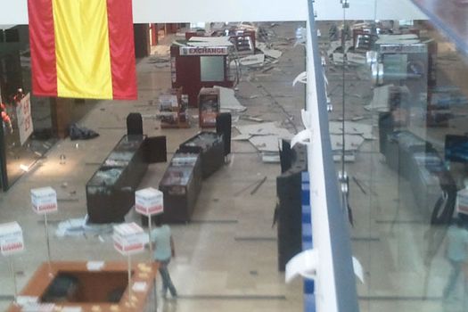 Angajaţii de la serviciul de pază al mall-ului au izolat zona afectată, adică parterul clădirii unde au căzut bucăţile de plafon, în timp ce sute de clienţi au rămas la etajele superioare asistând la incident.