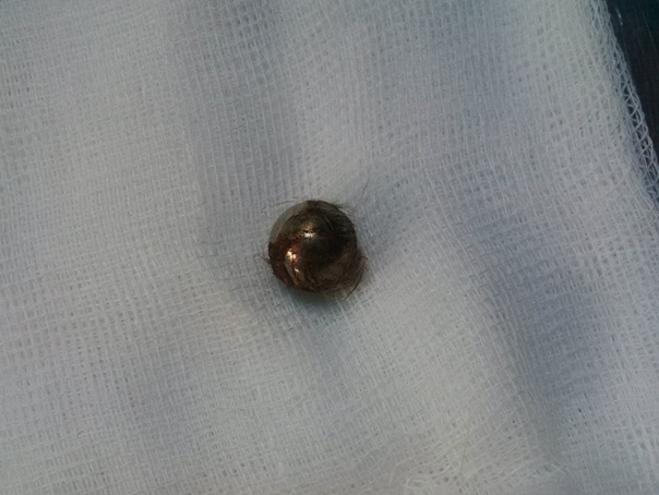„La început am crezut că e glonţ în craniu şi am hotărât să facem operaţie, descoperind acest proiectil metalic care intrase în calota craniană cu tot cu piele. După extracţie, l-am studiat şi credem că a fost tras cu o praştie. Este evident un caz de cruzime împotriva unui animal”, a declarat medicul veterinar Willi Glaser.