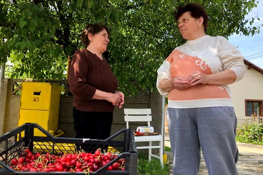 „Sunt stricate rău. S-au făcut mănânchi şi au mucegăit între ele. S-au copt greu şi sunt şi greu de adunat. Aduni două, trei cireşe din 20”, a spus o bătrână.