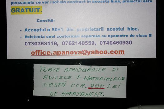 „Atragem atenţia că prin aceste anunţuri se încearcă colectarea unor sume de bani de la locatari într-un scop potenţial fraudulos. Apa Nova Bucureşti nu colectează bani în teren. Pentru a fi credibile, persoanele în cauză au creat şi au postat o adresă de e-mail şi afişează mai multe numere de telefon mobil care nu aparţin societăţii Apa Nova Bucureşti”, se arată într-un comunicat de presă transmis, joi, agenţiei MEDIAFAX.