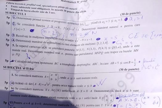 UPDATE Subiectele primite de elevi la proba de Matematică