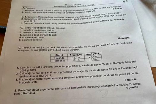 Subiectele primite de liceenii la proba scrisă la Geografie.