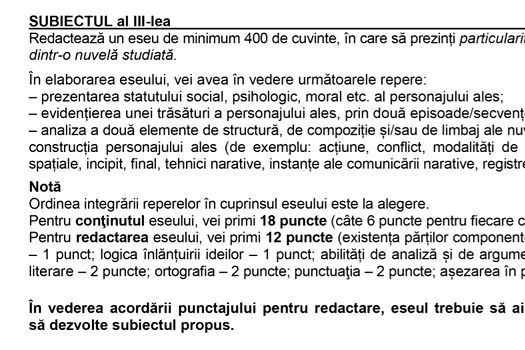 La uman absolvenţii au avut la subiectul al treilea să prezinte particularităţi de construcţie a unui personaj dintr-o nuvelă studiată.
