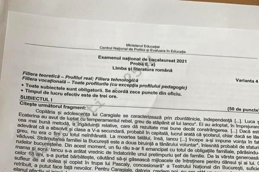 1 iulie 2021 – Limba şi literatura maternă – proba E.b) – proba scrisă