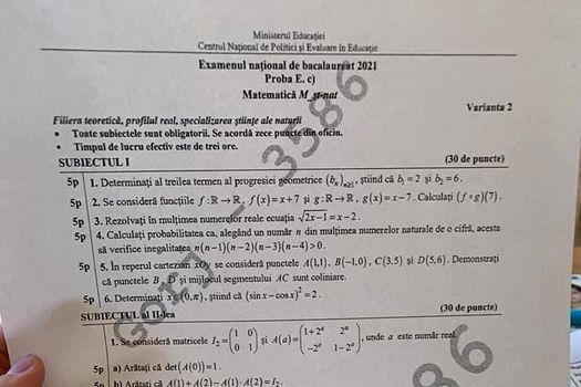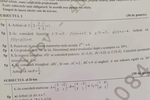 UPDATE Subiectele primite la matematică, la profilul mate-info, ştiinţe ale naturii şi cel tehnologic, sunt: