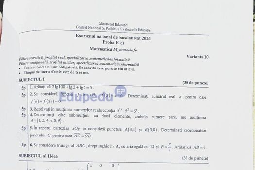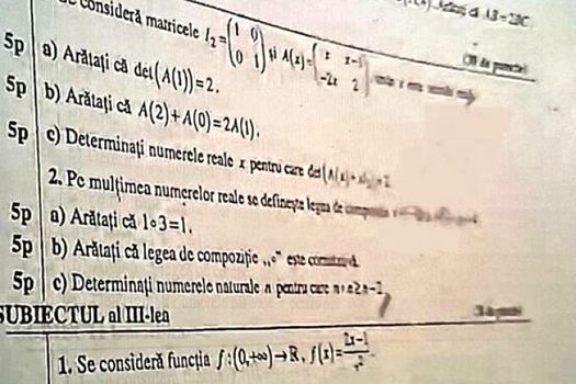 Iată ce au primit elevii care susţin proba scrisă la Matematică, profilul Tehnologic, potrivit stirileprotv.ro: