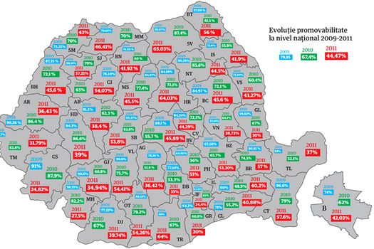 În iulie 2010, promovanilitatea în judeţ era de 86,38 la sută după contestaţii. Totodată, în sesiunea din toamna anului trecut, promovabilitatea a fost de 59,24 la sută.