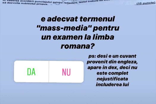 „Poate ştiu ce înseamnă televiziuni, radio, presă scrisă şi aşa mai departe, dar nu au de unde să ştie că suma acestor lucruri se numeşte mass-media. Nu se învaţă la şcoală, atunci de ce s-ar da într-un test?”