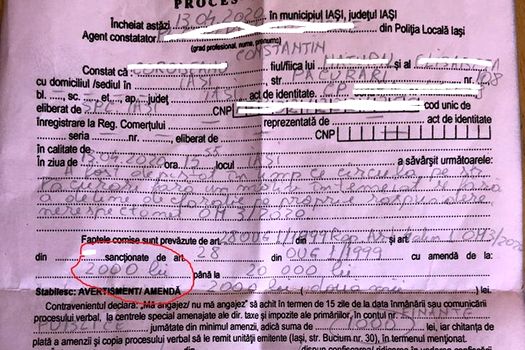 „A săvârşit următoarele: a fost depistat pe str. Păcurari fără a lua măsurile necesare de prevenire a virusului COVID-19, neputându-şi justifica prezenţa în zonă, neavând declaraţia pe proprie răspundere”, se arată în amendă.