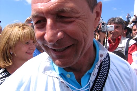 "Îmi este drag portul maramureşean, tocmai de aceea, azi, o maramureşeancă frumoasă m-a îmbrăcat în haine populare, dar numai de la brâu în sus", a spus preşedintele Băsescu.