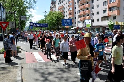 Cei peste două mii de participanţi la Marşul Învierii, majoritatea aparţinând cultelor penticostal şi baptist, au pornit din partea de jos a oraşului şi au traversat Bistriţa pe traseul Bulevardul Independenţei – strada Gării – Bulevardul Decebal – Strada Crinilor – Piaţa Petru Rareş – pietonalul Liviu Rebreanu.