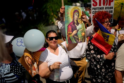 Participanții au venit cu pancarte și icoane ortodoxe. Pe pancarte stă scris „Nu trădați poporul roman”, „Strămoșii s-au jertfit pentru România Mare, nu pentru căsătorii homosexuale”.