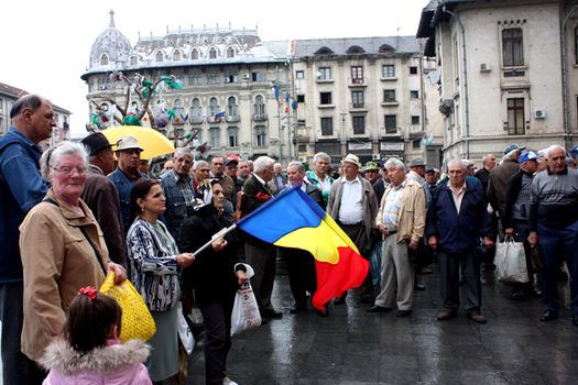 La Timişoara, aproximativ o sută de persoane, membre ale Uniunii Generale a Pensionarilor din Timiş, pichetează Prefectura. Protestatarii poartă pancarte pe care scrie „Nu tăiaţi pensiile „, „Jos Guvernul”, „Nu moarte prin înfometare”, fluieră şi scandează „Hoţii”.